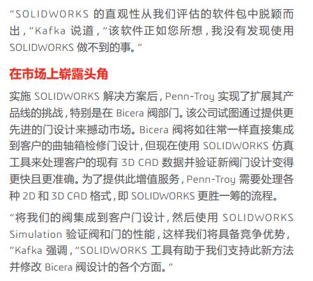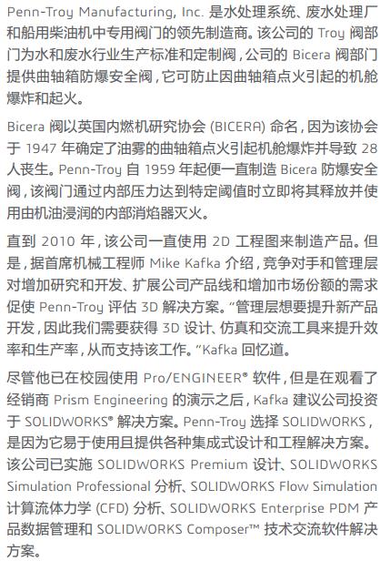 Penn-Troy Manufacturing 利用 SOLIDWORKS設(shè)計(jì)、仿真、 CFD 分析、 PDM 和技術(shù)交流解決方案來縮短設(shè)計(jì)周期、提高質(zhì)量、減少原型并擴(kuò)展其專業(yè)水和防爆安全閥系列。